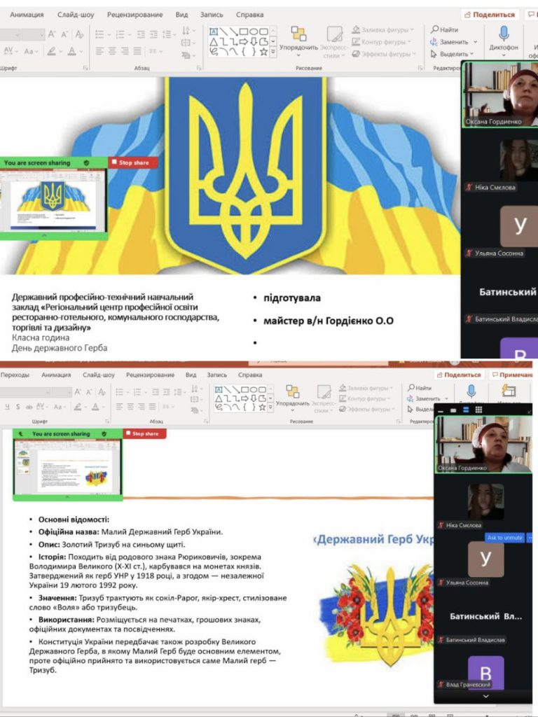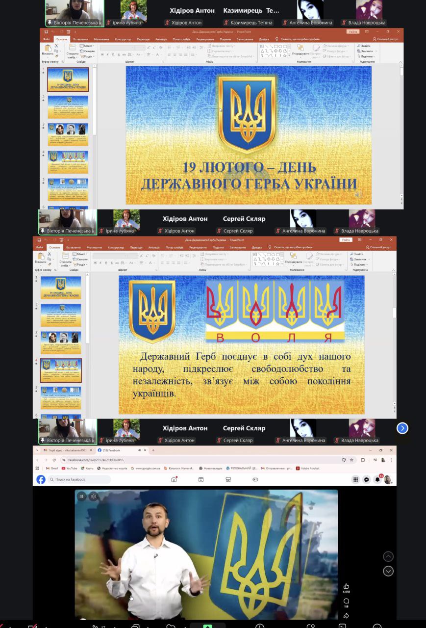 У режимі онлайн відбулися виховні години на тему: «Знати й поважати Герб України», під час яких здобувачі освіти поглибили знання про історію та значення одного з головних символів нашої держави.